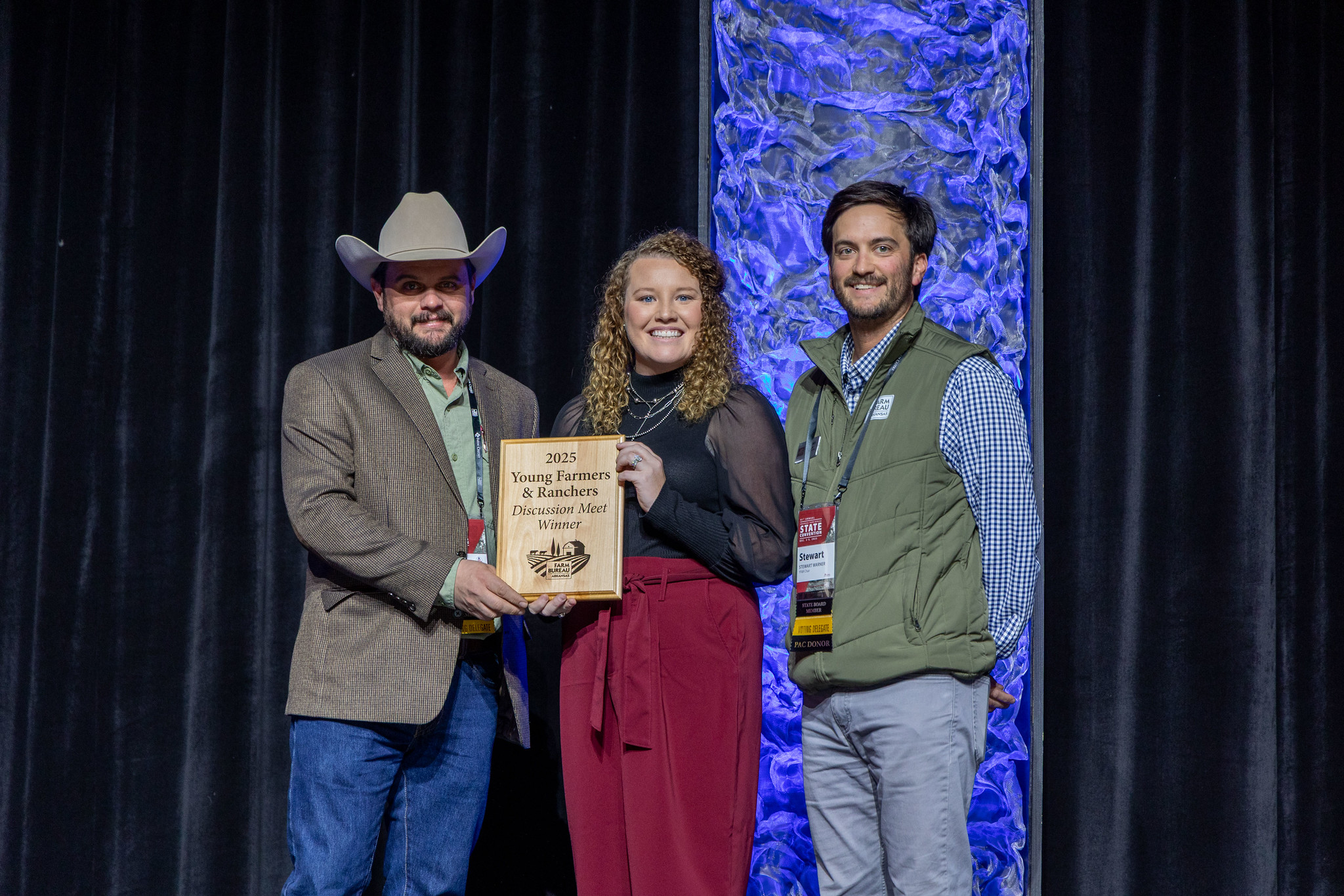 The discussion meet allows young farm leaders to demonstrate problem-solving and verbal presentation skills while sharing their views on agriculture issues. There were 14 competitors in the discussion meet. Holliday won $7,000 courtesy of Southern Farm Bureau Life Insurance Co.