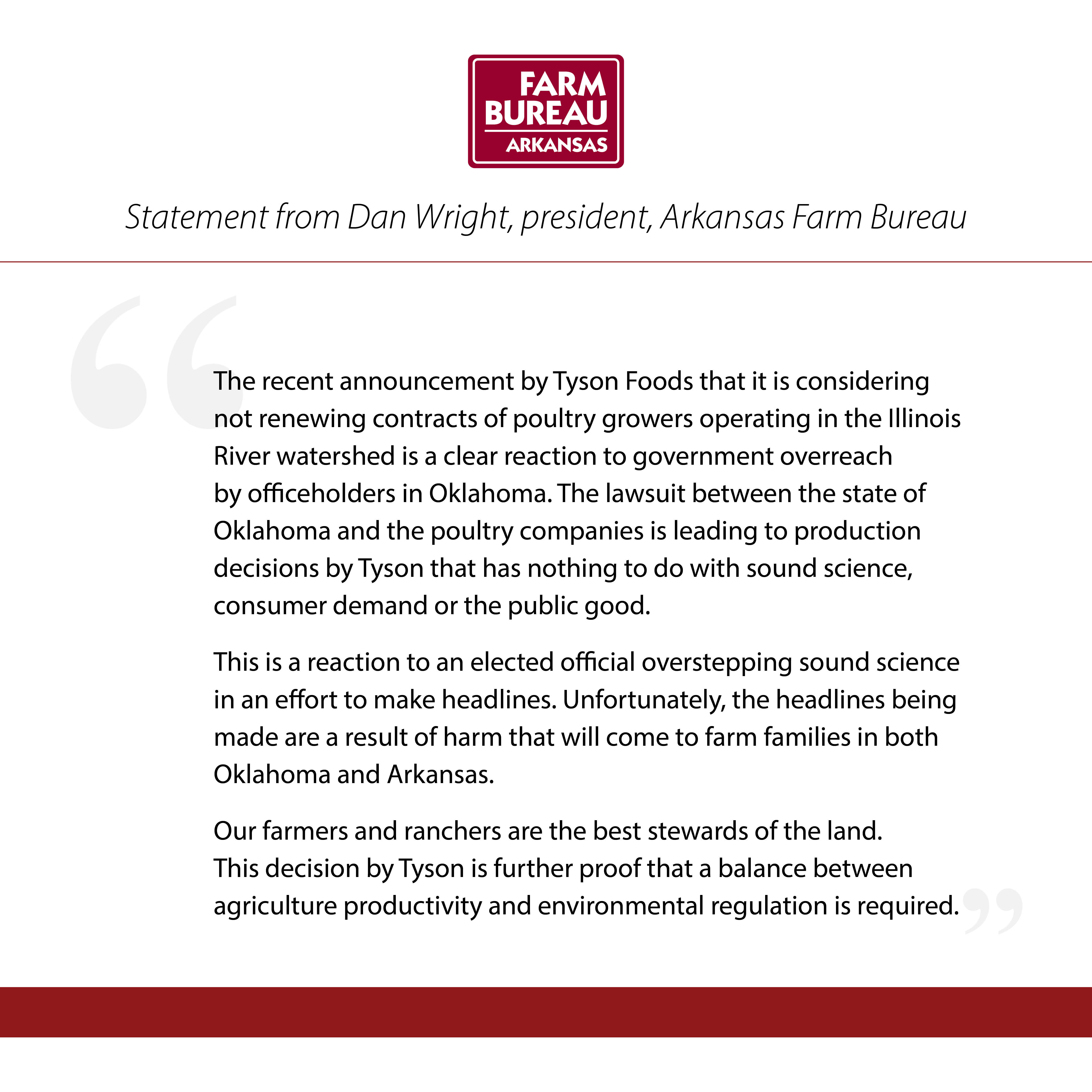 Statement from Dan Wright, president, Arkansas Farm Bureau